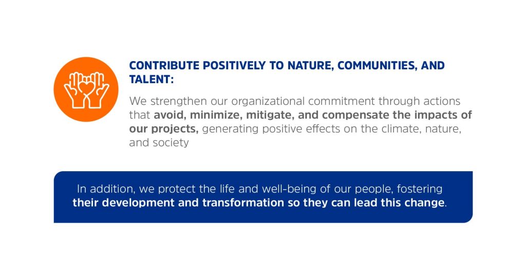 This dimension aims to generate a positive impact on nature and communities, with a strong commitment to decarbonization and achieving the NetZero pathway.
