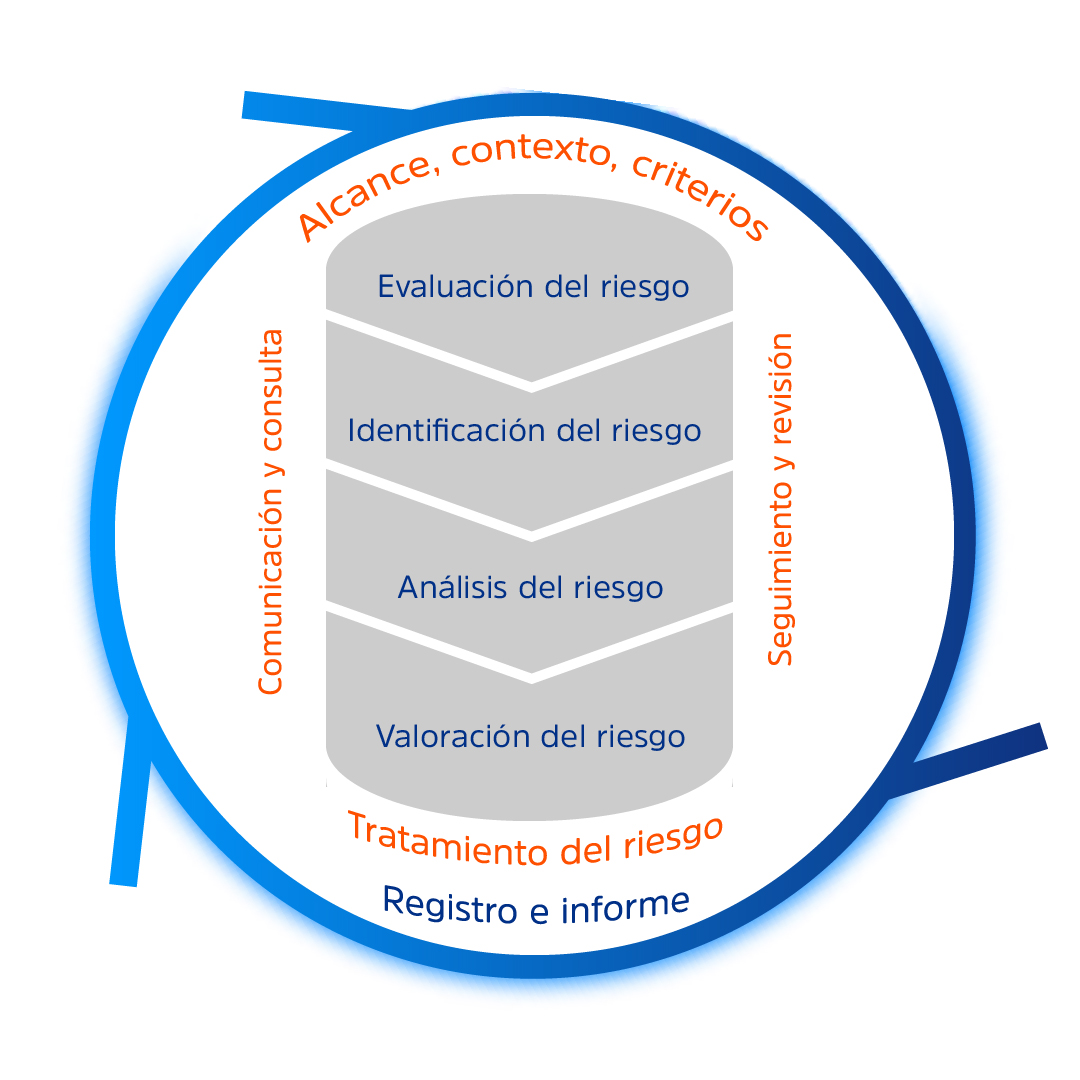 Contamos con un procesos sistemático y homologado de identificación, análisis, evaluación, monitoreo y comunicación de los riesgos a los que estamos expuestos, con el objetivo de minimizar los impactos sobre nuestros recursos empresariales y aprovechar las oportunidades en la estrategia, los proyectos, los procesos y las operaciones.