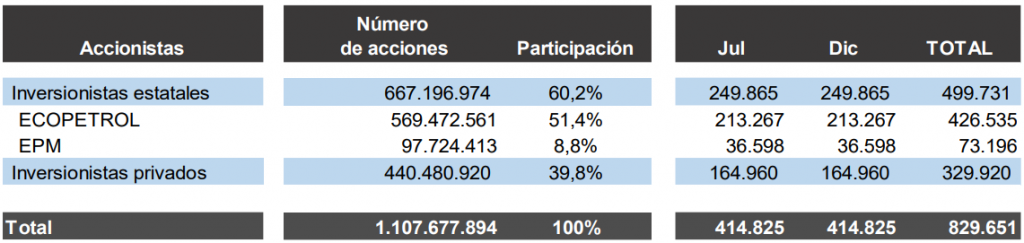 - ISA entregará a sus accionistas un dividendo ordinario de COP 749 por acción para un monto total de COP 829.651 millones.