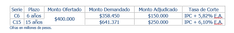 • La colocación tuvo una sobre demanda de 3,33 veces el monto ofertado.